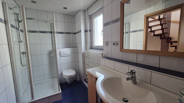 - Ausstattung des Bades Dusche, Badewanne, Fenster