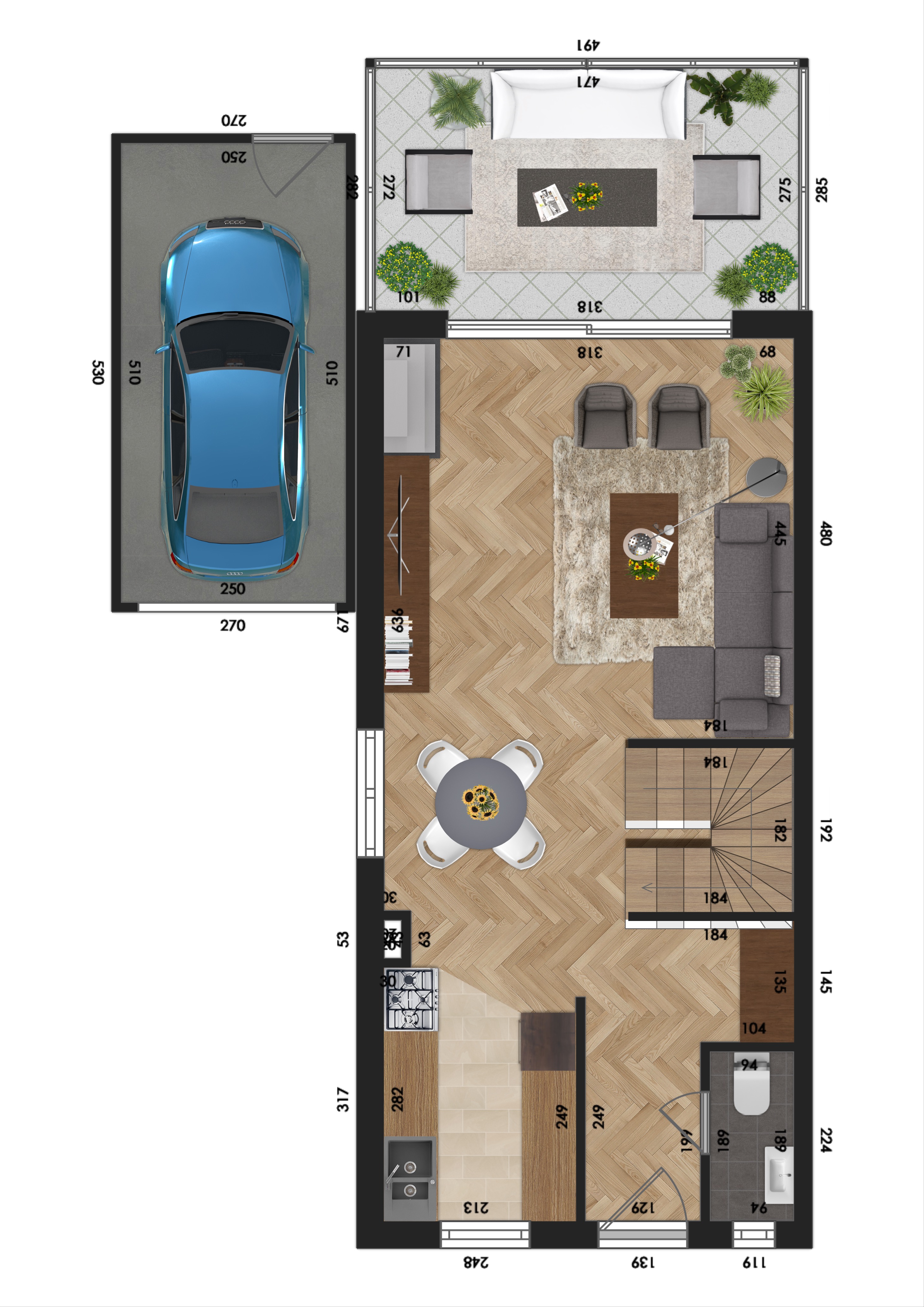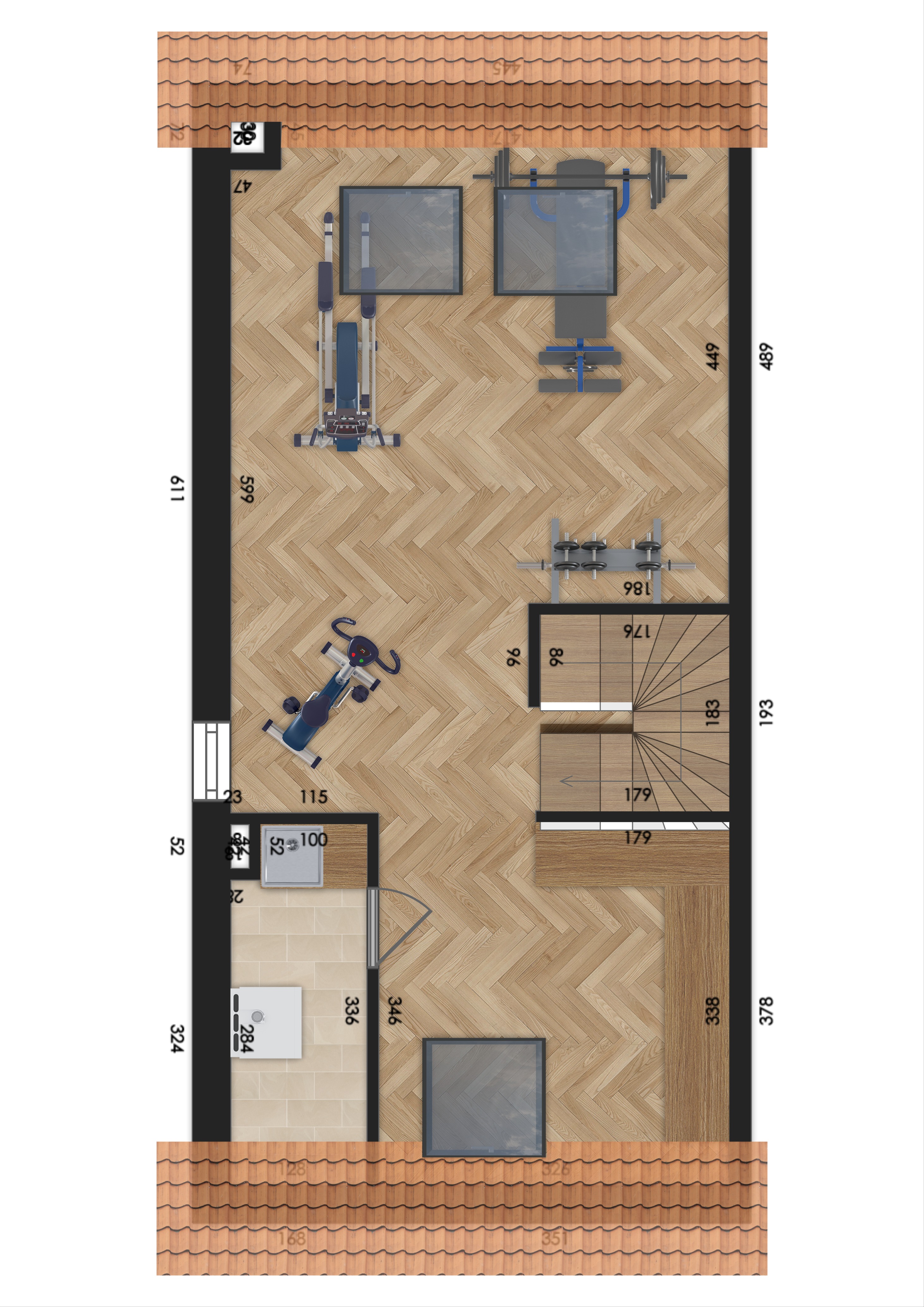 Der circa 21 m² große Hobbyraum im Keller lässt viel Raum für individuelle Gestaltung. Ob Kinderspielzimmer, Fitnessraum oder Partyraum, hier sind Ihrer Kreativität keine Grenzen gesetzt.