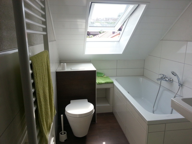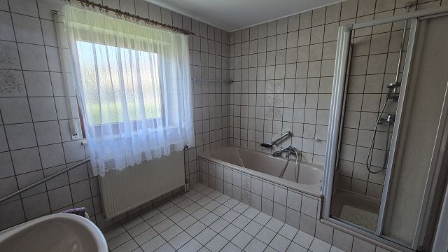 - Ausstattung des Bades Badewanne, Dusche, Fenster