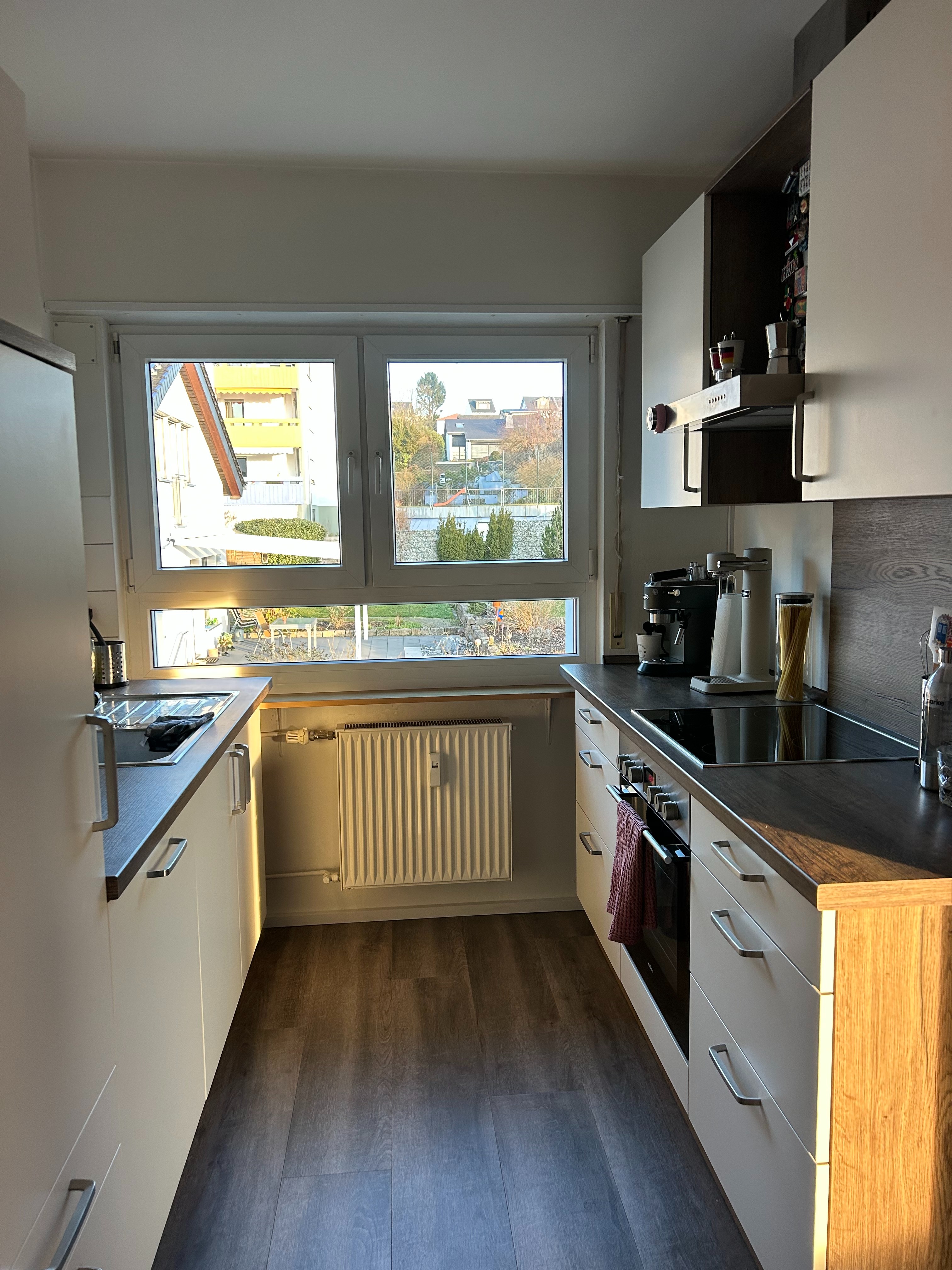 Der vorhandene Kaminofen und die Küche können ggf. vom Vormieter übernommen werden.