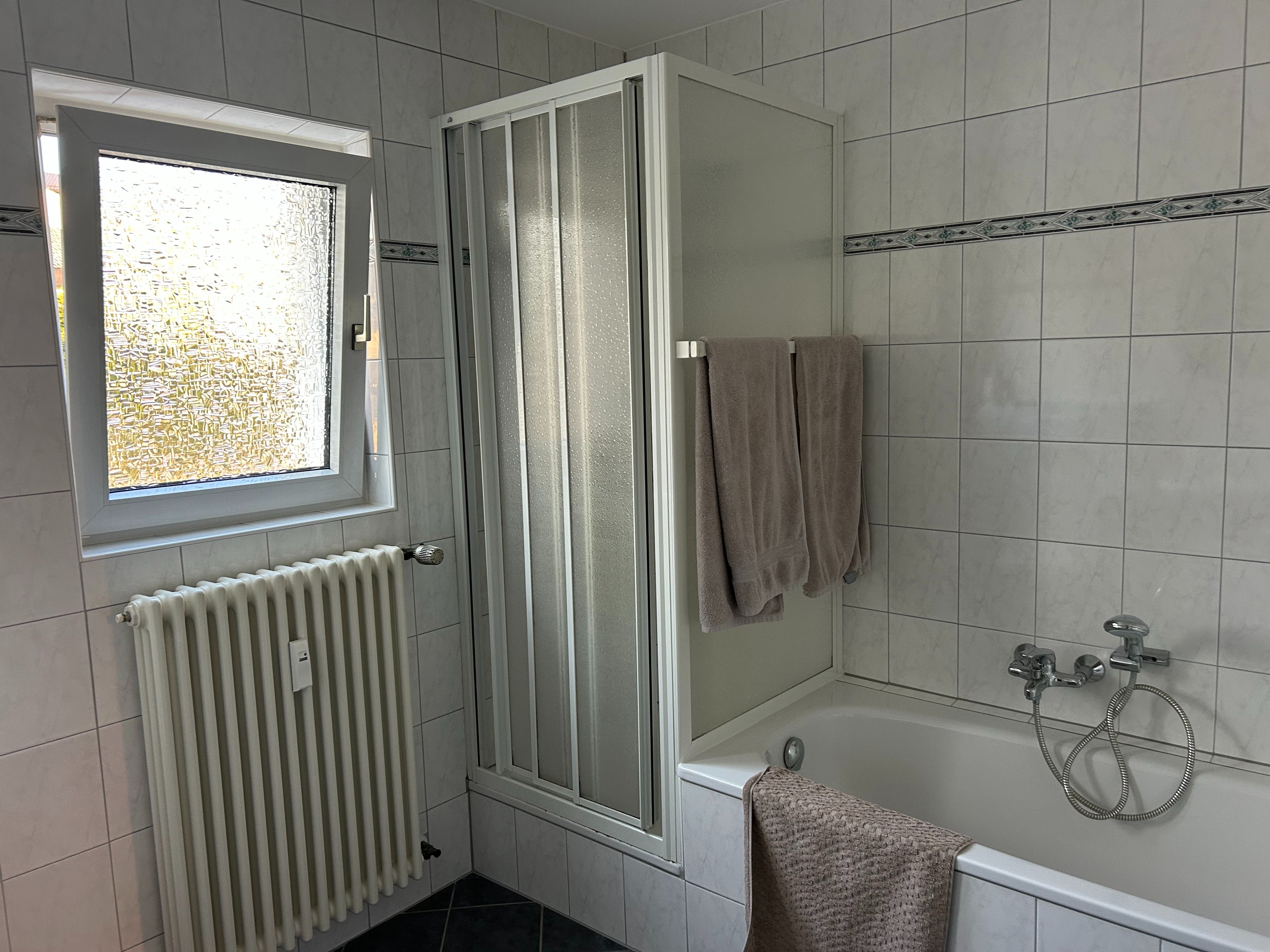 Die Wohnung im ersten Obergeschoss besticht durch die durchdachte und großzügige Raumaufteilung. Ein Wohnzimmer mit Kaminanschluss und Balkonzugang, ein Esszimmer, drei Schlafzimmer, ein Badezimmer mit Dusche und Badewanne, eine separate Toilette und eine Abstellkammer stehen Ihnen hier zur Verfügung.