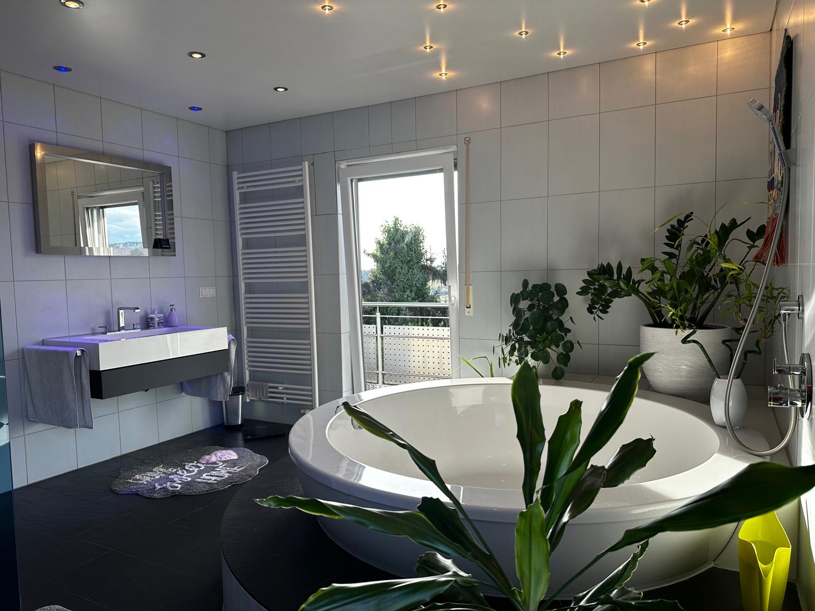 Moderne Einbauküche, zwei moderne Badezimmer, bodenebene Dusche im Hauptbadezimmer, luxuriöse Badewanne, Photovoltaik, Stromspeicher, Wallbox, Sauna, … .