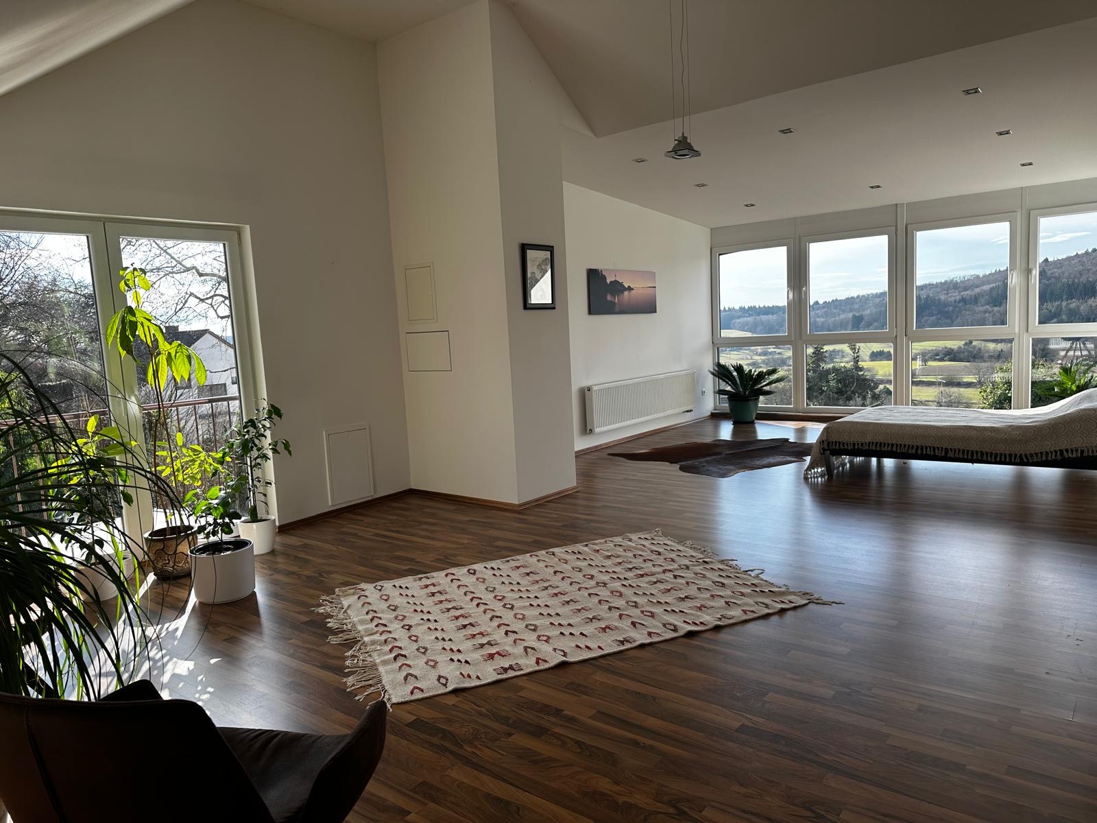 Das Haus besticht durch zwei Terrassen, einen Balkon und einen ebenen Gartenbereich, der Ihnen die Möglichkeit gibt, die ruhige und sonnige Lage in vollen Zügen zu genießen. Der Ausblick vom Dachstudio, vom Balkon oder von den Terrassen wird Sie jedes Mal aufs Neue begeistern.