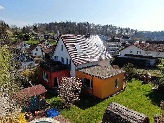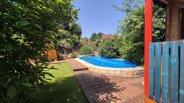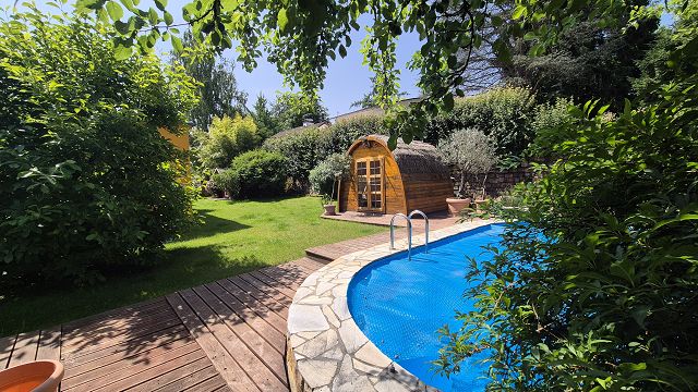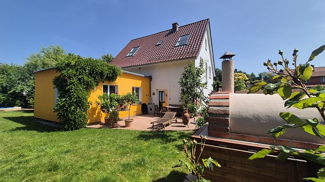 Ein Zuhause voller Leben. Perfekt für Familien mit Kindern nahe bei Heidelberg. Stellen Sie sich vor: die Kinder toben lachend durch den weitläufigen Garten, verstecken sich hinter dem liebevoll gestalteten Zirkuswagen oder plantschen im eigenen Pool mit Gegenstromanlage und Wärmepumpe. Die Sonne scheint, während Sie auf einer der drei Terrassen eine selbstgemachte Pizza aus dem gemauerten Pizzaofen genießen. In diesem Haus werden Träume wahr!