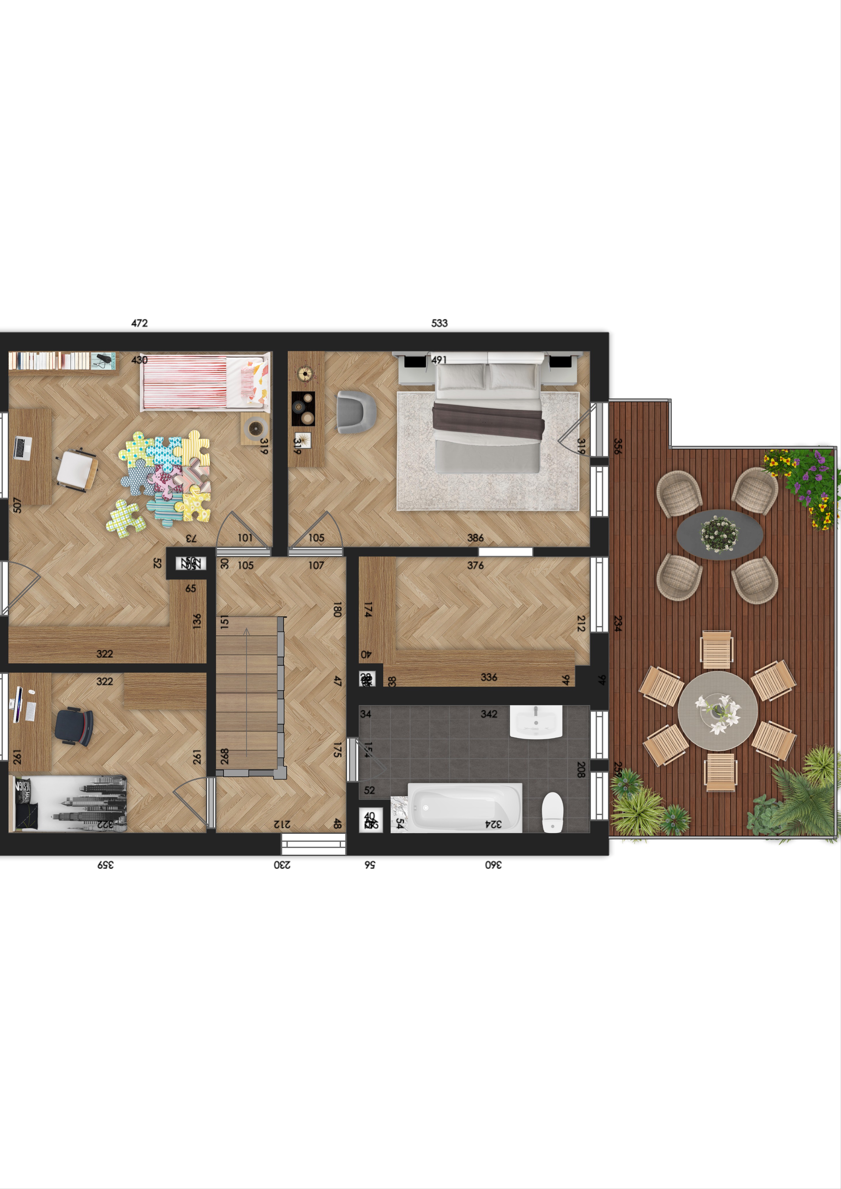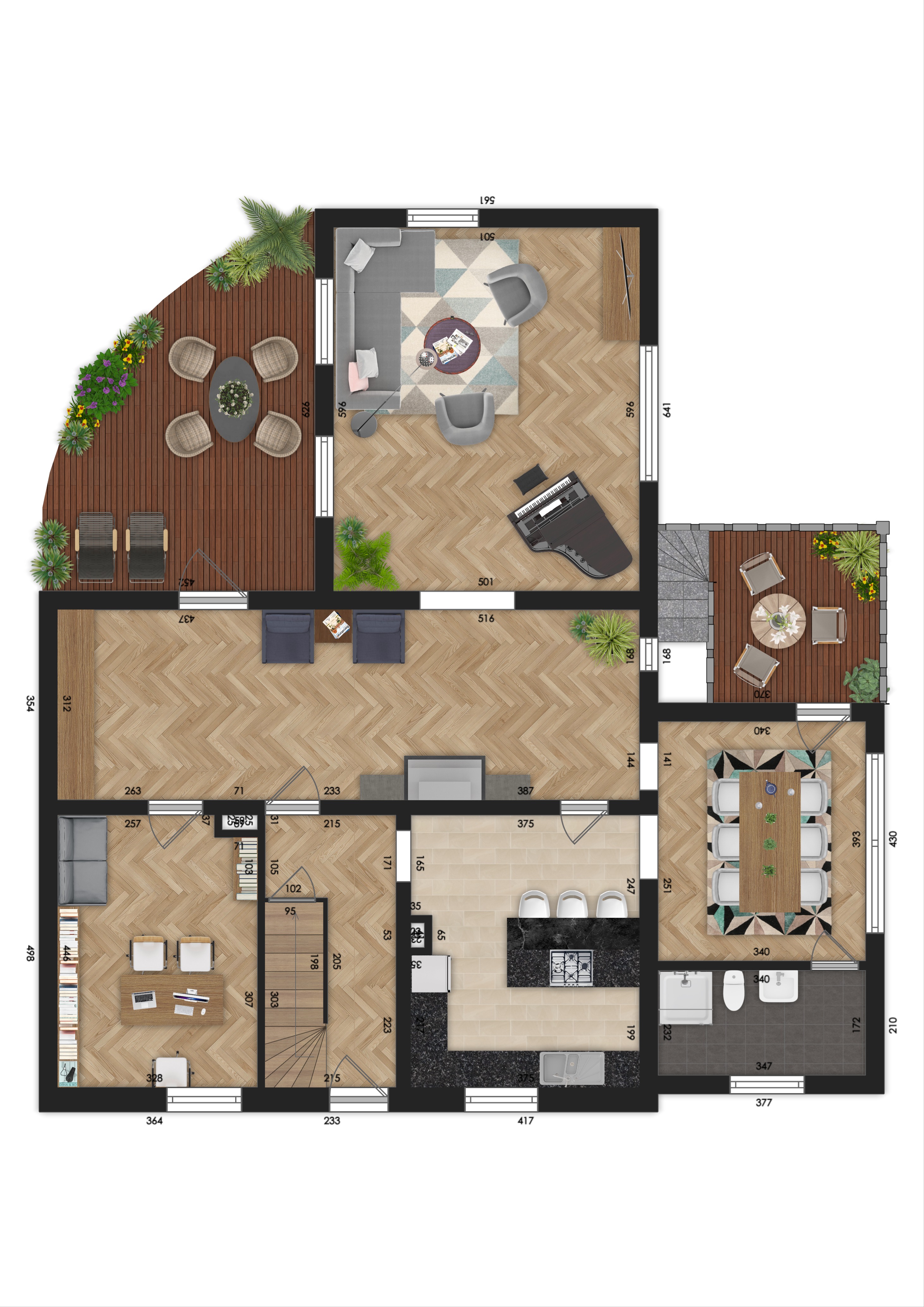 Mit einer Wohnfläche von rund 240 m² und insgesamt 10 Zimmern und 2 Badezimmern ist genügend Platz für jedes Familienmitglied – ob als Schlafzimmer, Büro, Spielzimmer oder kreativer Rückzugsort.