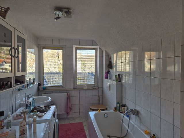 - Ausstattung des Bades Dusche, Fenster, Badewanne