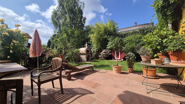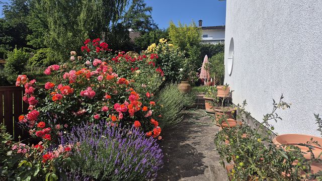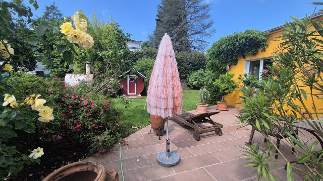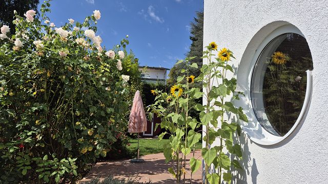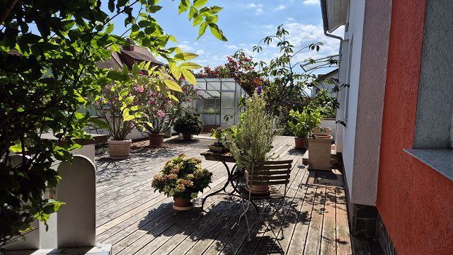 Die drei Terrassen, der Balkon und der gigantische Garten laden zum geselligen Verweilen, Feiern und einfach zum Entspannen und Relaxen ein.